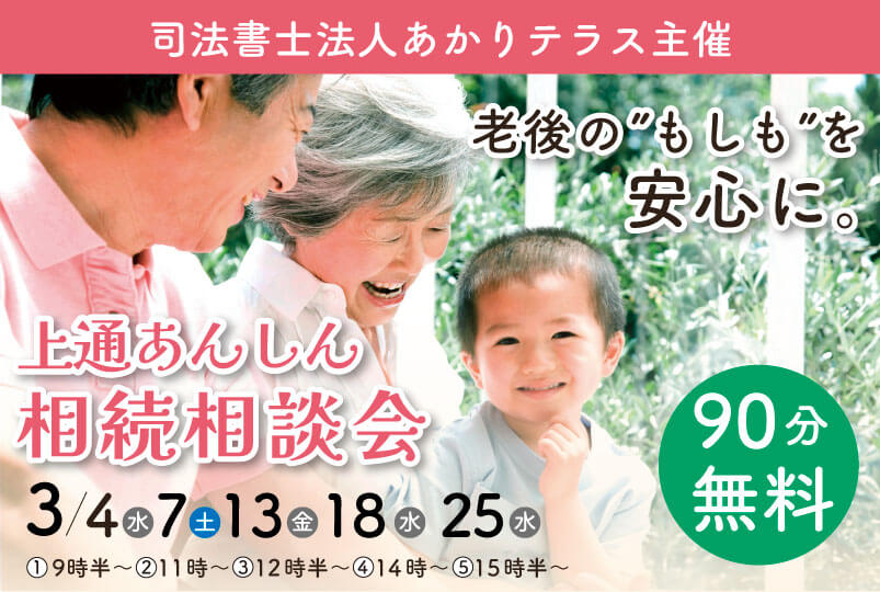 3/25: あかりテラス相続無料相談会〜おひとりさま・認知症・遺言〜