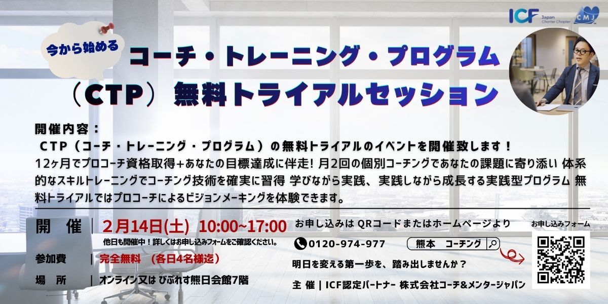 2/28:今から始める!コーチ・トレーニング・プログラム(CTP)無料トライアルセッション