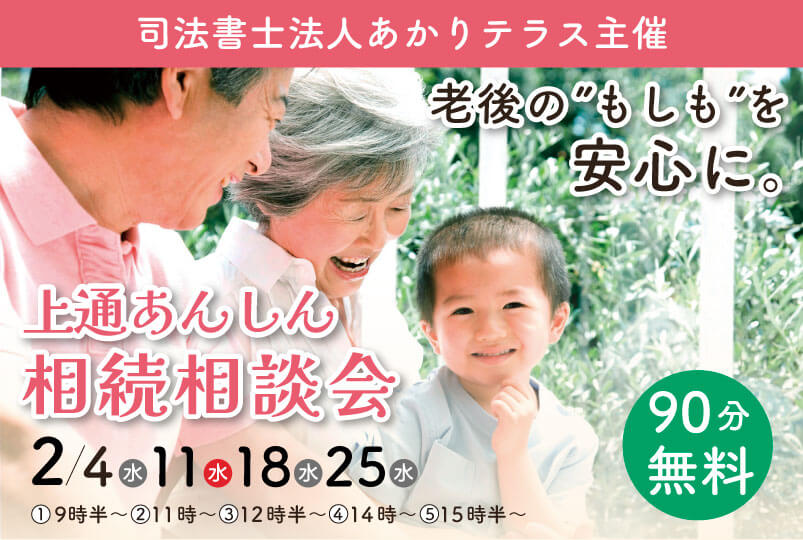 2/25: あかりテラス相続無料相談会〜おひとりさま・認知症・遺言〜