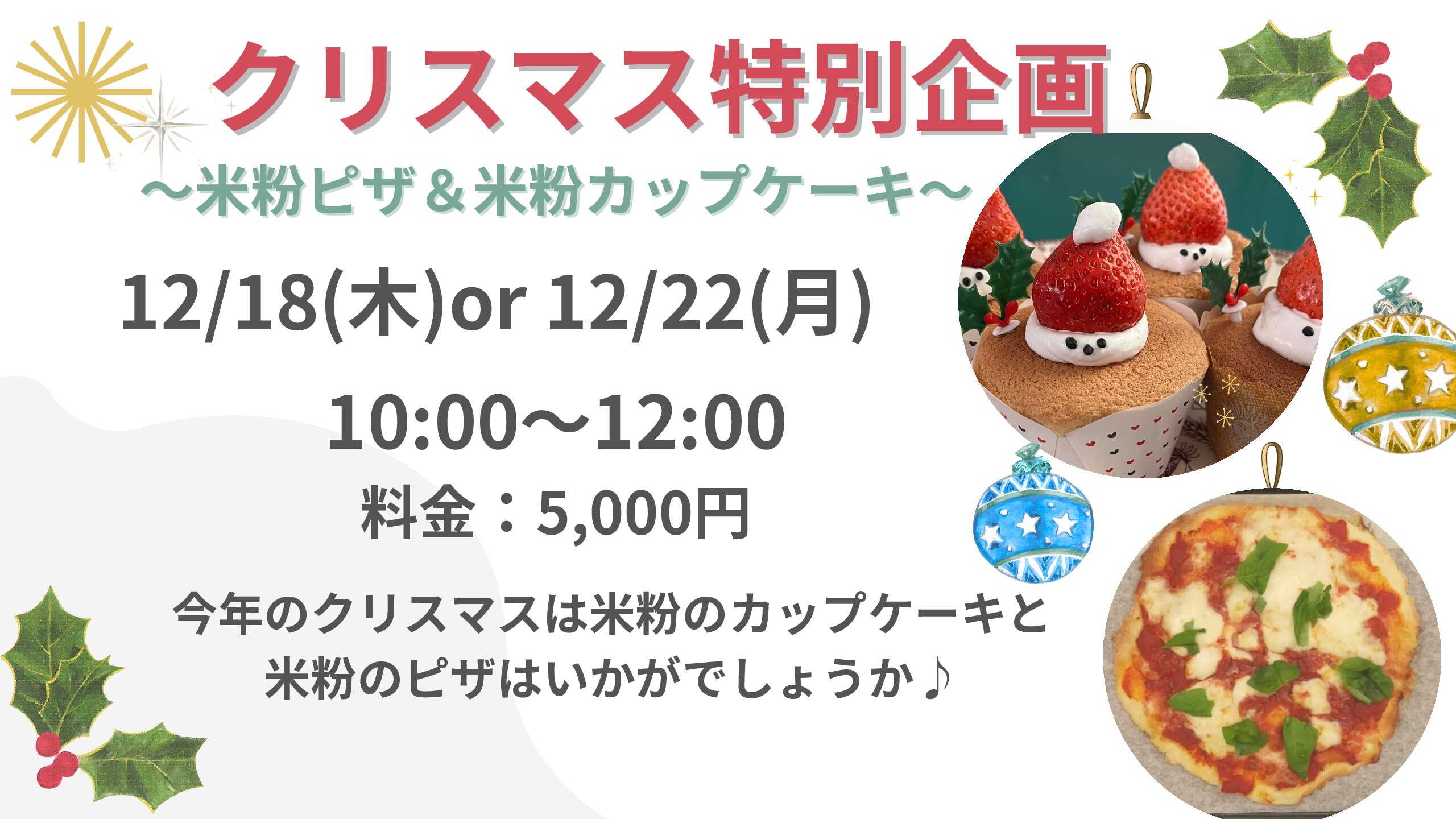 12/18開催:☆クリスマス特別企画〜米粉ピザ&米粉カップケーキ〜☆