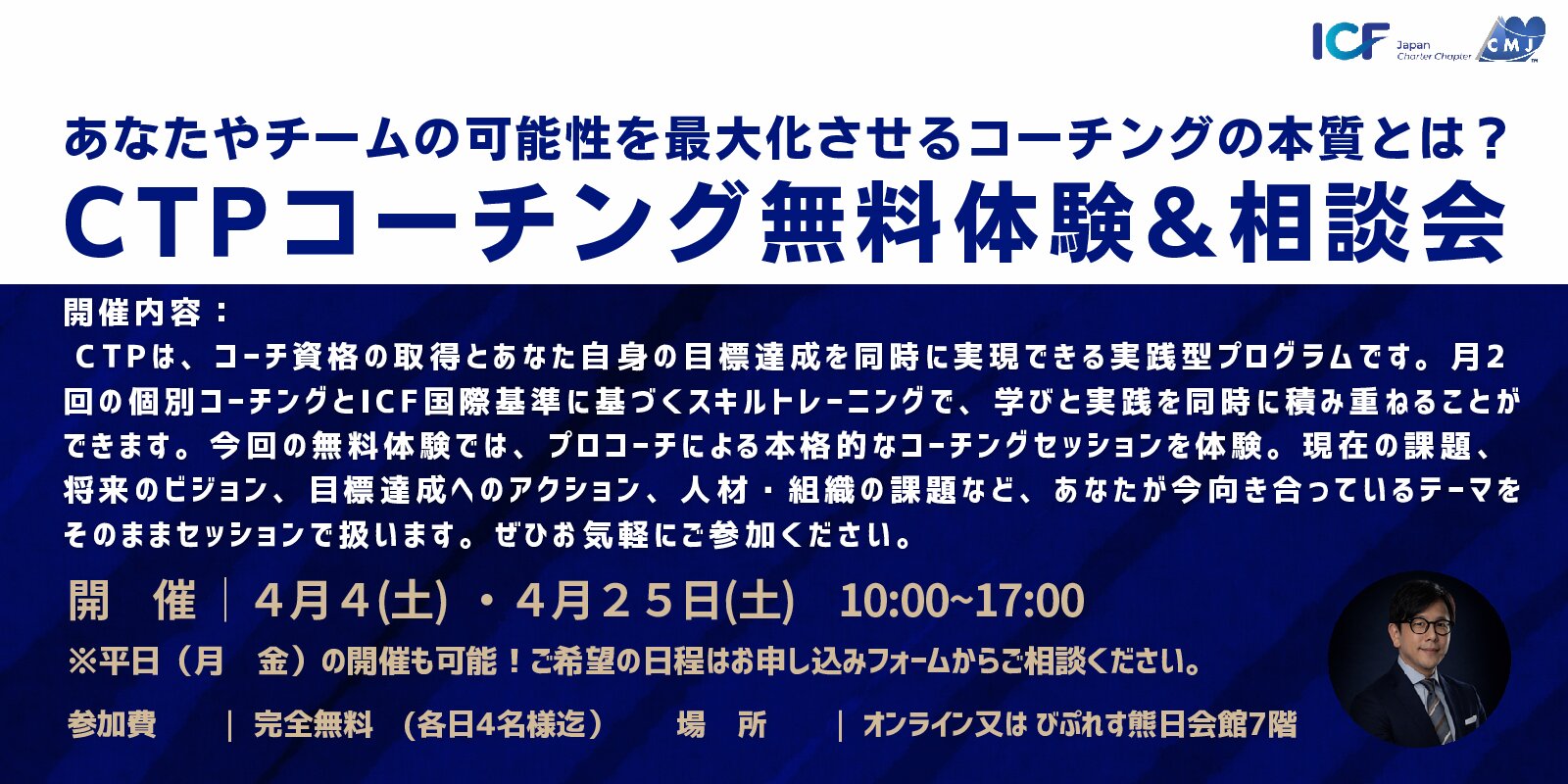4/25:あなたやチームの可能性を最大化させるコーチングの本質とは?CTPコーチング無料体験&相談会
